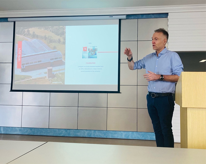 LAMIGRAF இன் விற்பனை மேலாளர் செபாஸ்டியன் எங்களைச் சந்தித்து BODA இல் ஒரு அறிக்கையைப் பகிர்ந்து கொண்டார். அவர் அடிப்படையில் LAMIGRAF இன் வளர்ந்த வரலாற்றை அறிமுகப்படுத்தினார். சில பிரபலமான வடிவமைப்புகள், நடைமுறை பயன்பாடு வழக்குகள் மற்றும் அடுத்த ஆண்டு வண்ண போக்கு.